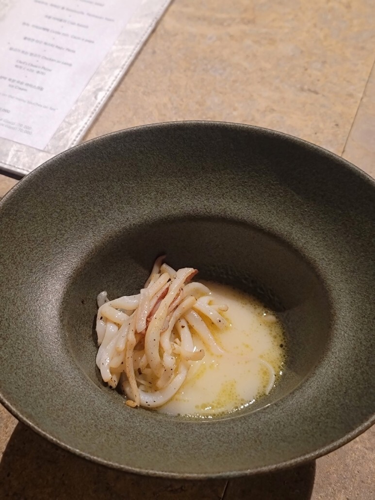 불향을 입힌 한치와 카치오페페 소스가 예술